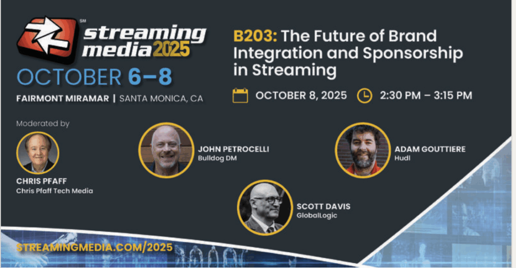 Bulldog DM founder John Petrocelli will participate in a panel at the 2025 Streaming Media conference at the Fairmont Miramar hotel in Santa Monica on October 8th. The panel entitled “The Future of Brand Integration and Sponsorship in Streaming” will address: brand integration today going beyond mere product placements or commercial breaks, creating organic connections between content and brand experiences with sponsored content, co-branded shows, and interactive experiences. This session will dig into the ways brands are embedding themselves in video content.